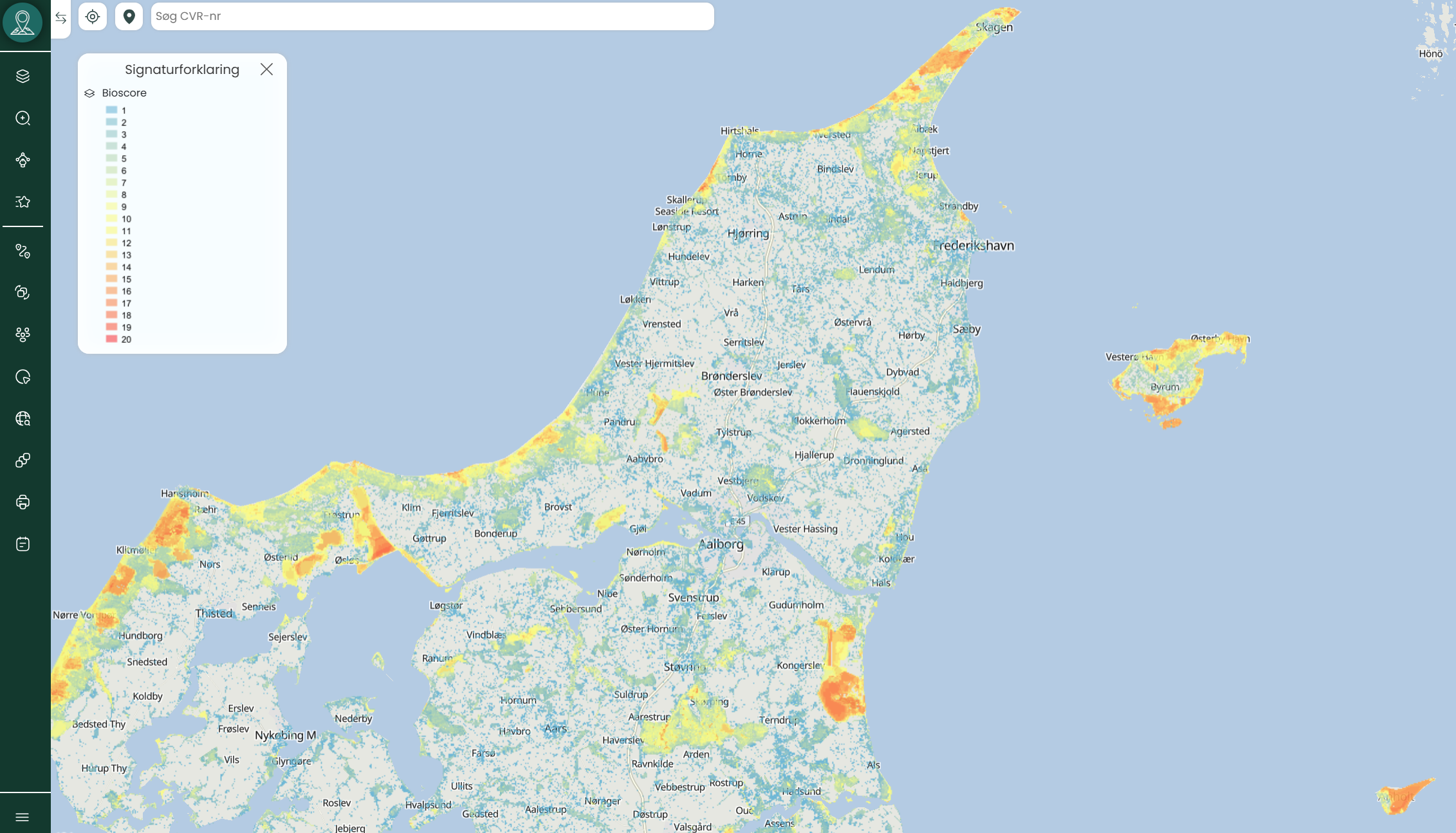 Bioscore er et avanceret kortlag integreret i Mapit-platformen fra Viamap, designet til at analysere og visualisere biodiversitet i Danmark. Det giver indsigt i både kendte og potentielle levesteder for rødlistede arter – arter vurderet som truede i Den Danske Rødliste.