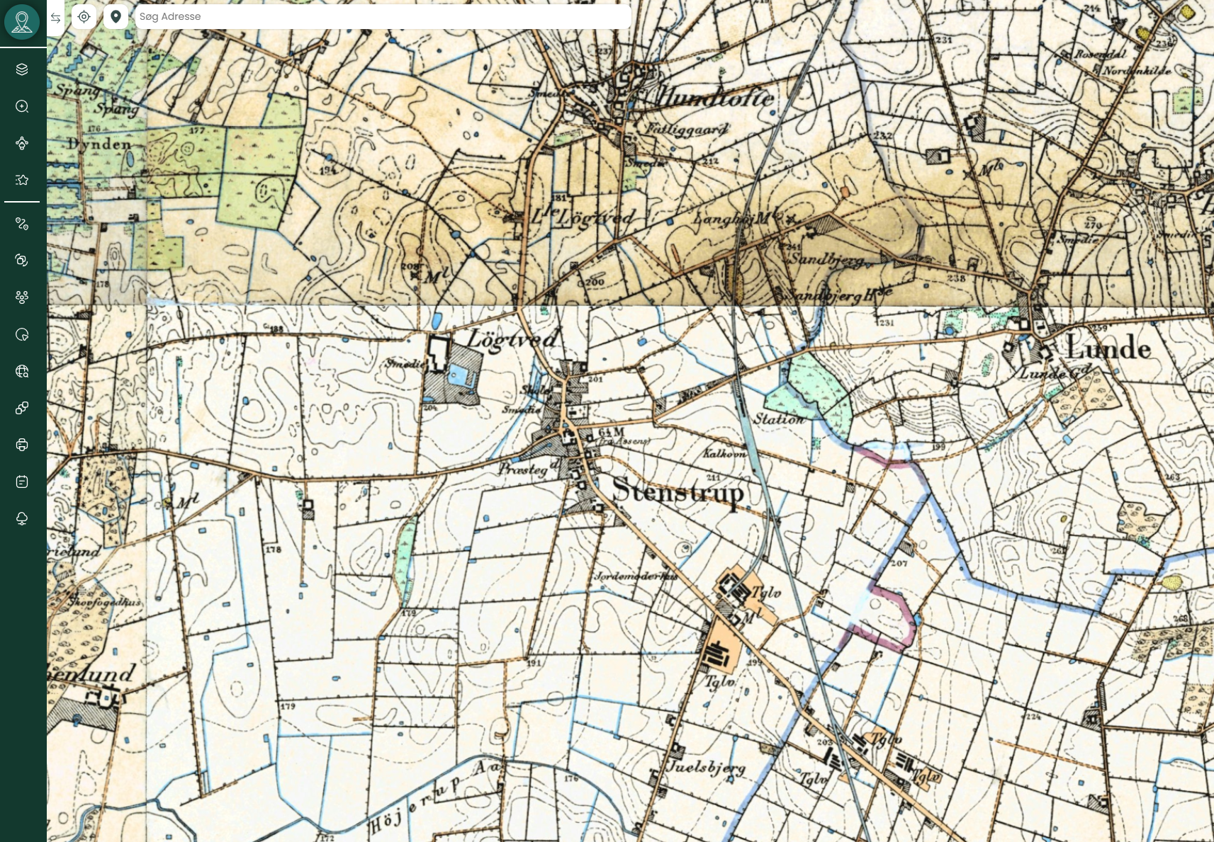 I Mapit kan du aktivere lag som “Høje målebordsblade 1842-1899” og sammenligne det med moderne data. Du kan analysere landskabsforandringer, planlægge projekter, og dokumentere historiske forhold med kortet som reference.
