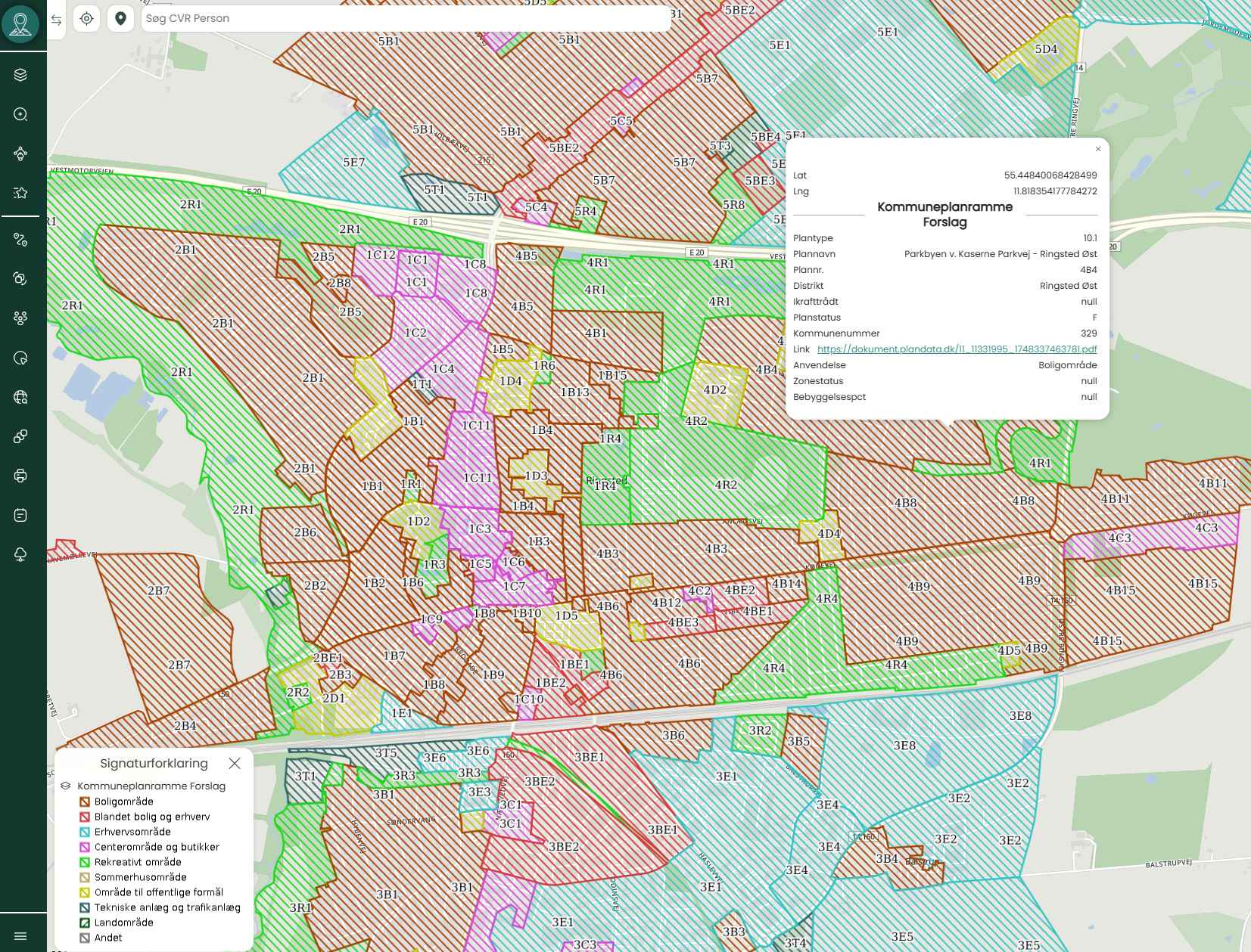 Kortlaget Kommuneplanramme Forslag i Mapit giver dig en visuel og datadrevet indgang til de planmæssige intentioner for arealanvendelsen i danske kommuner. Laget viser de områder, hvor kommunen har fremsat forslag til nye eller ændrede kommuneplanrammer – altså et vigtigt skridt i den fysiske planlægning, inden disse forslag bliver til endelige kommuneplaner. Med dette lag er det muligt at analysere planstrategiske hensigter på tværs af kommunegrænser og temaer – direkte i Mapit-platformen.